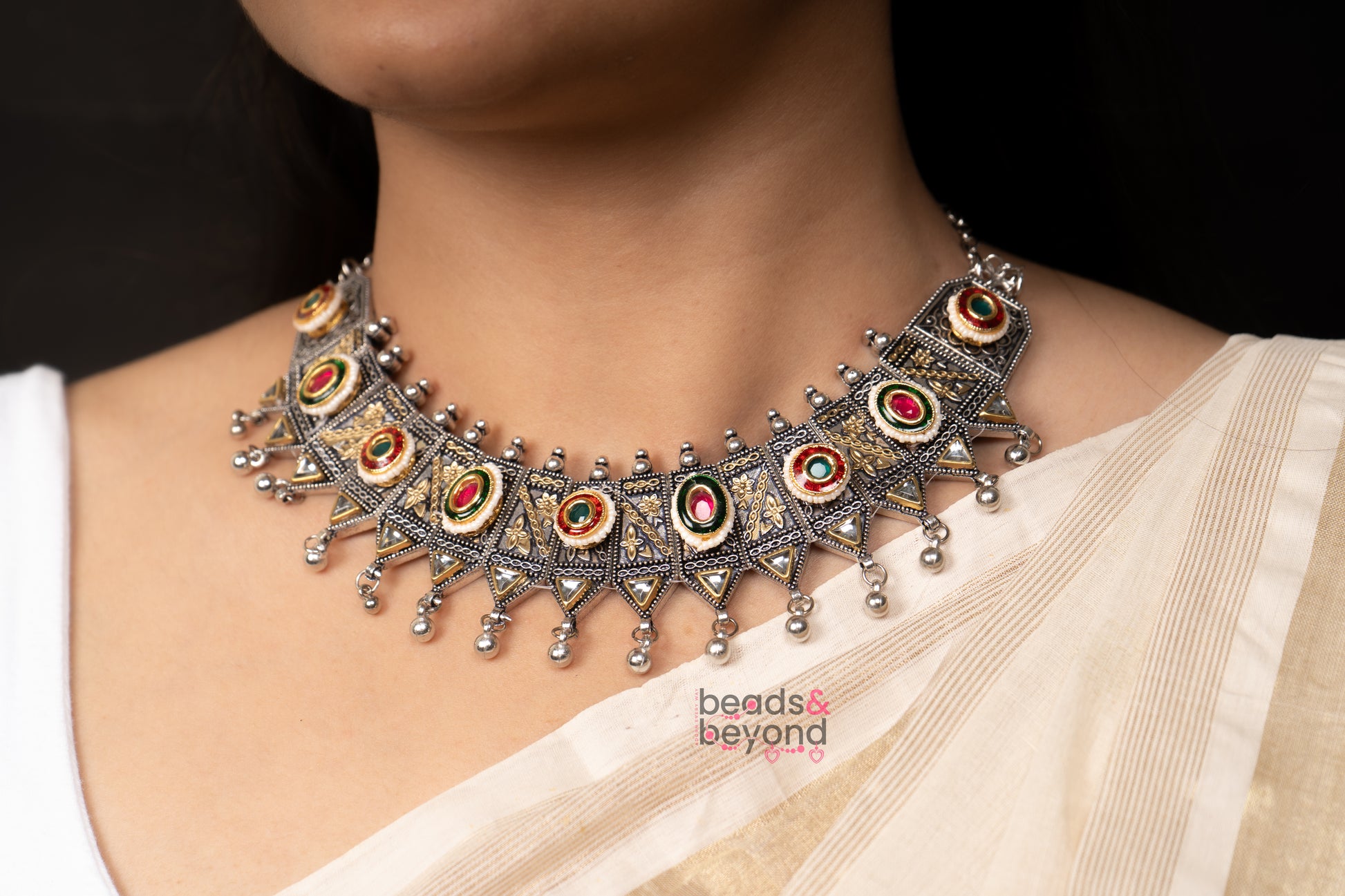 Radiate your style with our dual tone choker necklace, a perfect blend of tradition and modern charm. ✨ Handcrafted with kundan stones and finished in oxidised detail, this masterpiece reflects elegance with boho vibes. Made from tarnish-free, non-allergic material, it offers both beauty and comfort. The fusion jewelry design and trending style make it a versatile statement piece that effortlessly complements festive, ethnic, or contemporary outfits. A timeless treasure to cherish and flaunt with confidence. 🌸💫 #DualToneChoker #KundanCharm