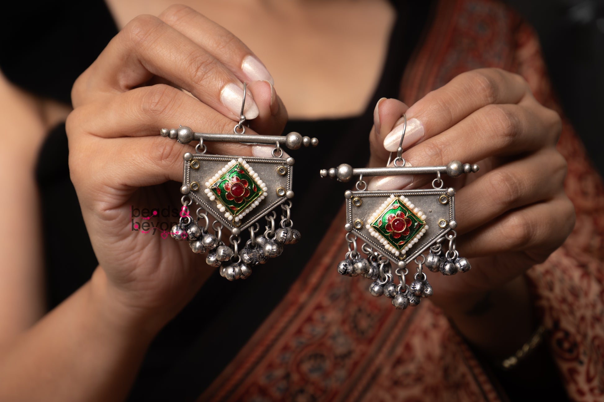 Elevate your festive look with our oxidised fusion earrings, finished in a radiant silver polish for a touch of timeless charm. 🌙 Crafted from tarnish-free, non-allergic material, these earrings promise comfort along with unmatched style. The trending design blends boho vibes with elegance, making them perfect for festive wear and beyond. Whether paired with traditional attire or fusion outfits, these earrings add a graceful sparkle that never goes unnoticed. ✨ #FestiveJewelry #BohoChic #OxidisedEarrings #FusionStyle