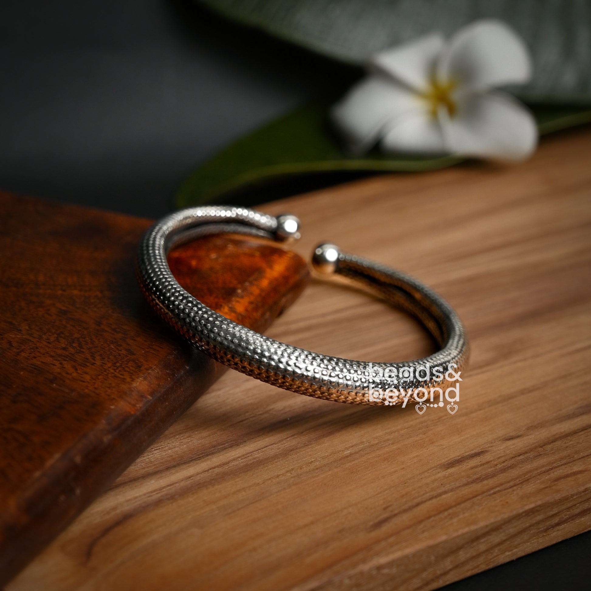 "Embrace effortless elegance with our casual hand kada! 🌟 Crafted from non-allergic, tarnish-free material, it's perfect for every skin type. This oxidized jewelry piece is the ultimate fusion of style and comfort, suitable for both men and women. Its versatile design complements bohemian and fusion wear, effortlessly fitting all sizes. Elevate your look with timeless charm. #ElegantDesign #BohemianWear #CasualChic 💫"