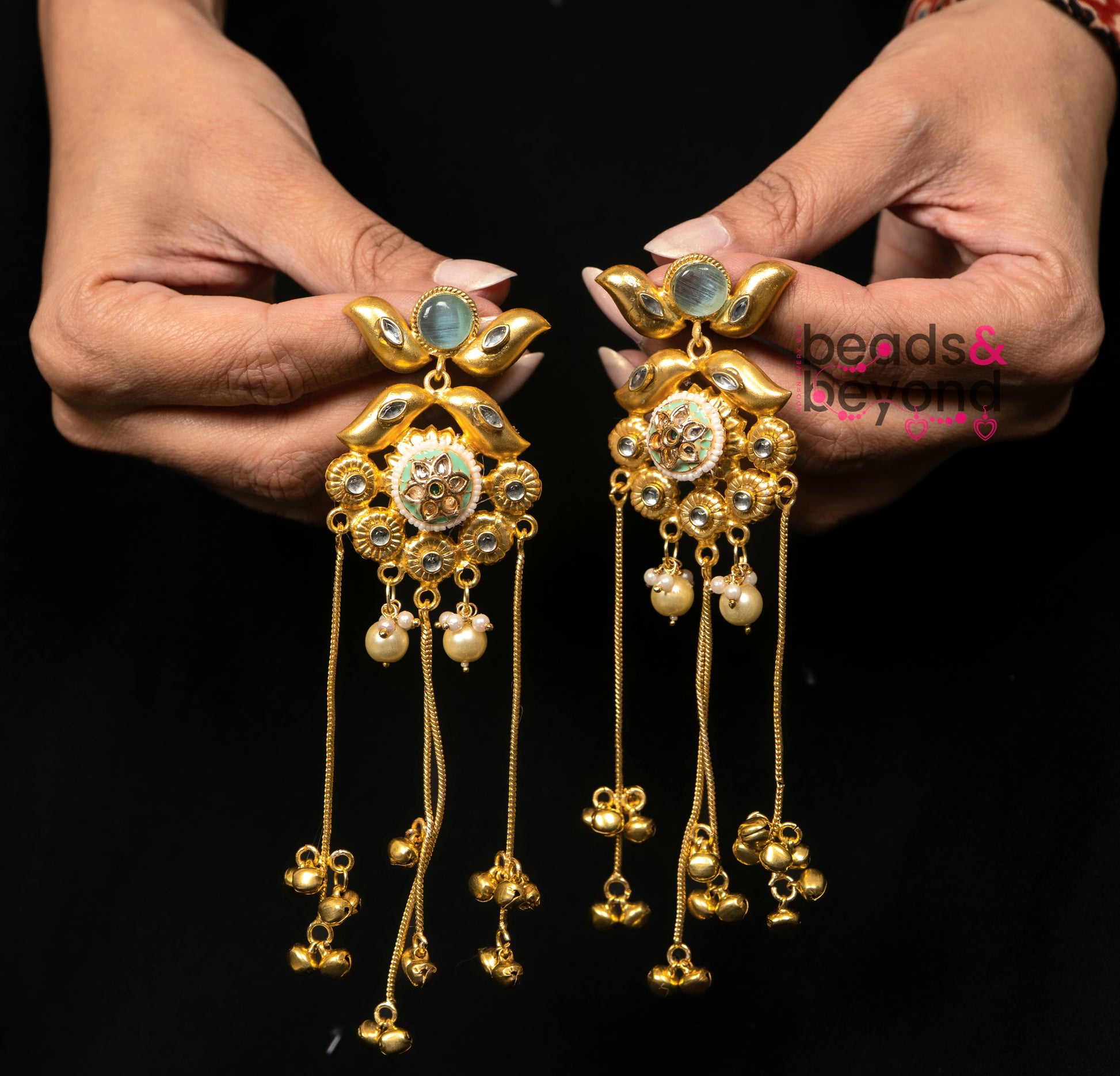 Add a touch of festive elegance with our fusion design earrings, polished in a stunning gold mix for timeless radiance. ✨ Crafted from tarnish-free and non-allergic material, these earrings are lightweight yet striking, making them perfect for long celebrations. Their unique design balances tradition and modernity, making them a standout in any festive collection. Ideal for pairing with ethnic or fusion wear, they bring effortless charm and grace to your festive style. 🌸 #FestiveGlow #FusionJewelry
